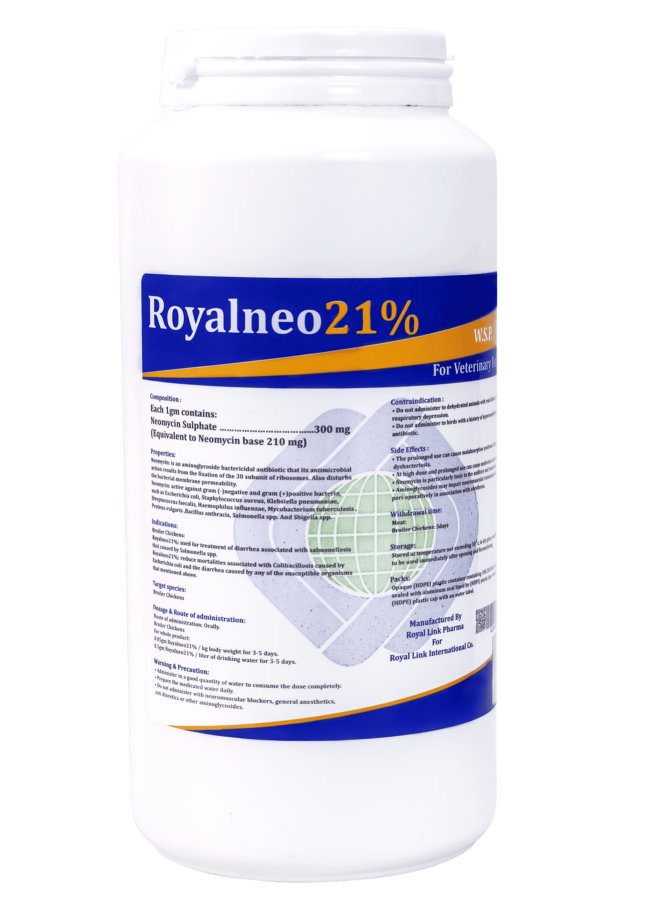 salmonellosis that caused by Salmonella spp . Royalneo 21% : reduce